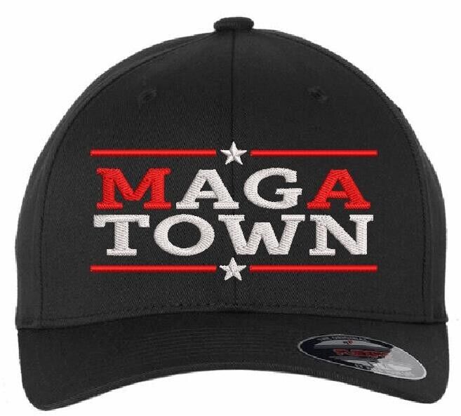 Trump 2025 MAGA TOWN Flex Fit Fitted BLACK Embroidered Hat Trump Vance 2025