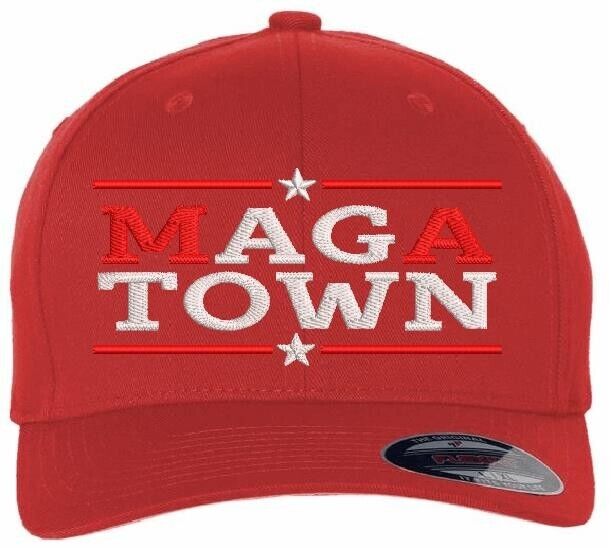 Trump 2025 MAGA TOWN Flex Fit Fitted RED Embroidered Hat Trump Vance