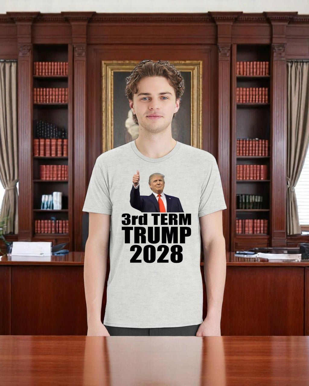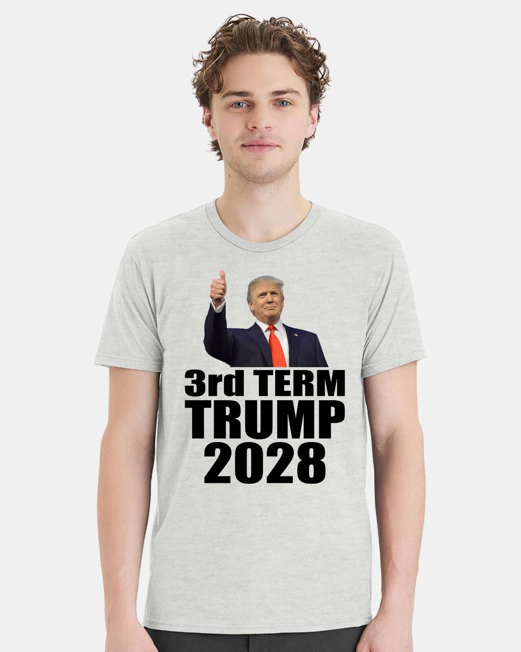 Trump 2028 T-Shirt 3rd Term 2028 Trump Thumbs Up Ash Gray Short Sleeve Shirt