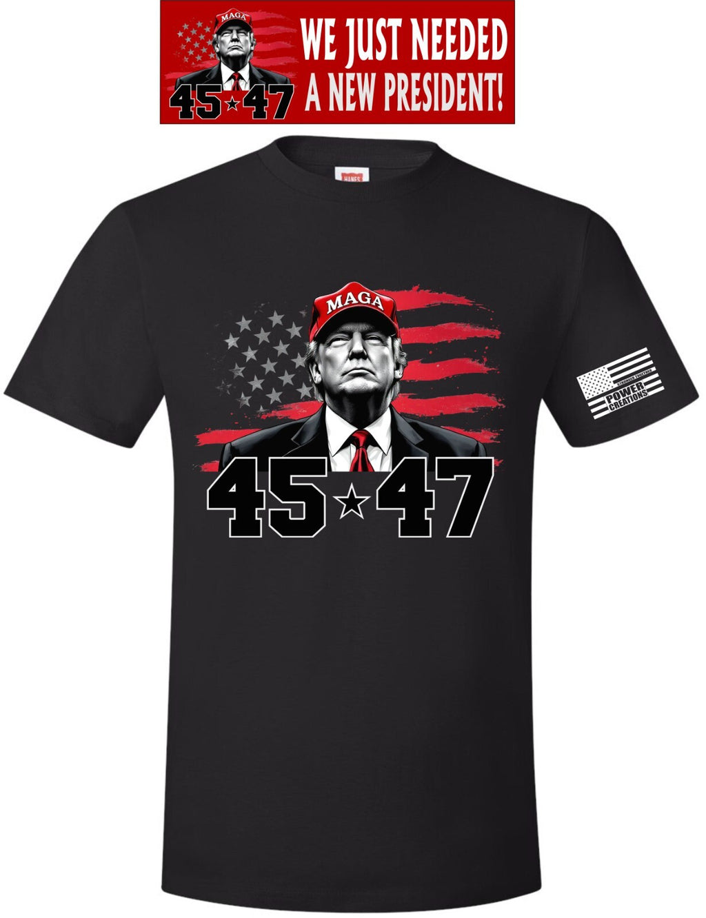 Trump 45 47 Making America Great Again Short sleeve T-shirt FREE BUMPER STICKER