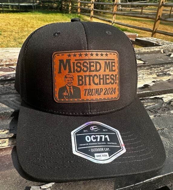Trump Bulletproof Missed me Bitch*es Black/Black Leather Badge Hat OC771 Mesh