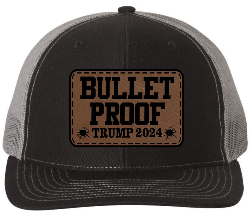 Trump Bulletproof Trump 2024 Leather Badge Hat - Richardson 112 Black/Charcoal