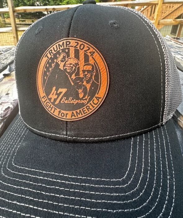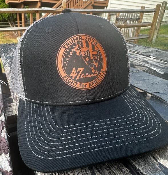 Trump Fight for America Circle Leather Badge Adjustable Hat BULLETPROOF Blk/Char