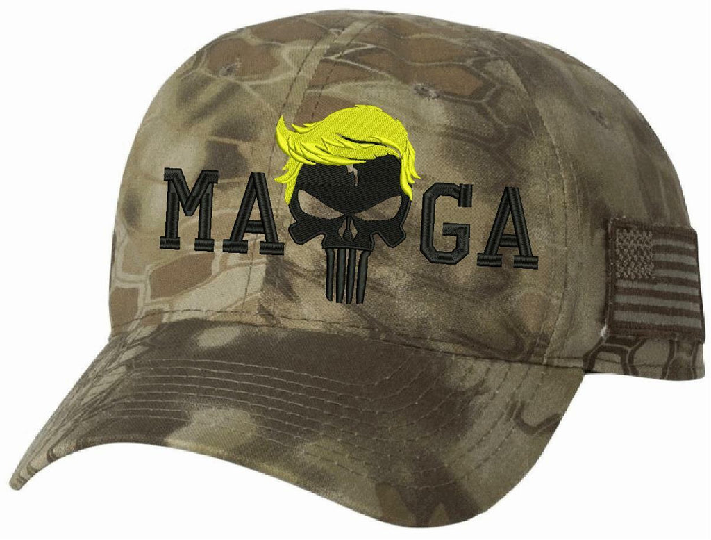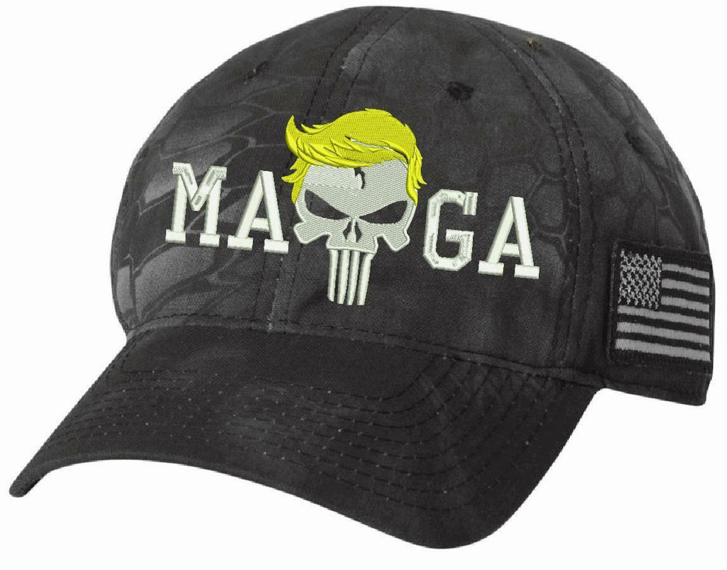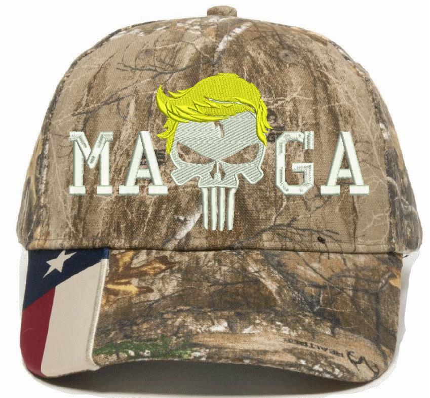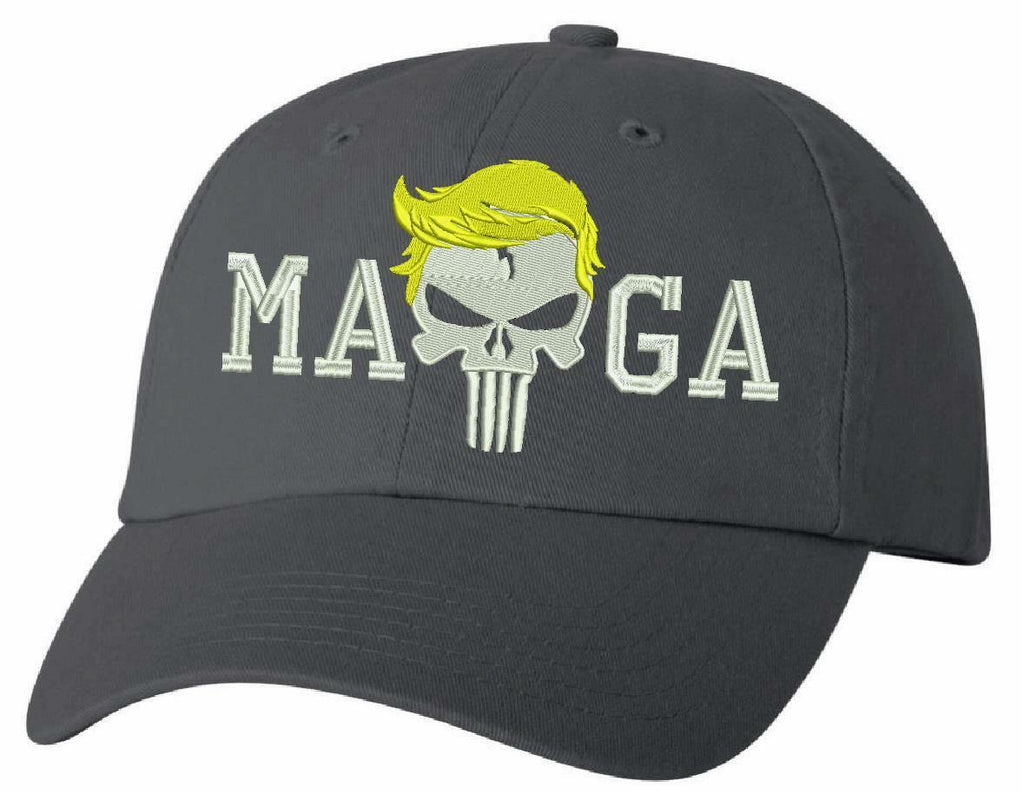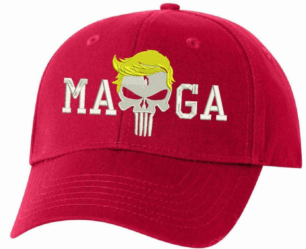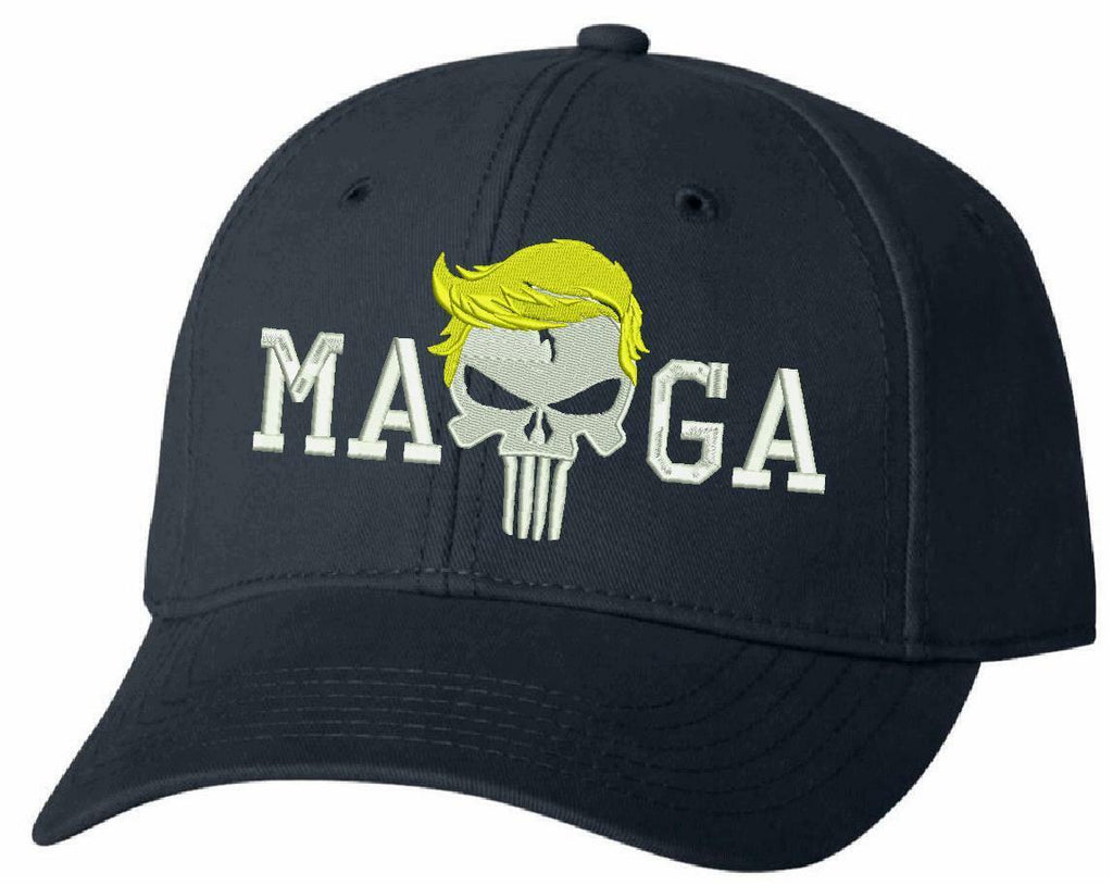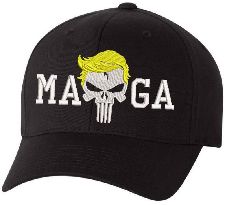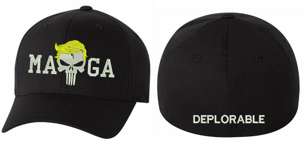 Trump Hat Punisher MAGA Embroidered Hat w/ DEPLORABLE on back / Flex Fit or Adj.