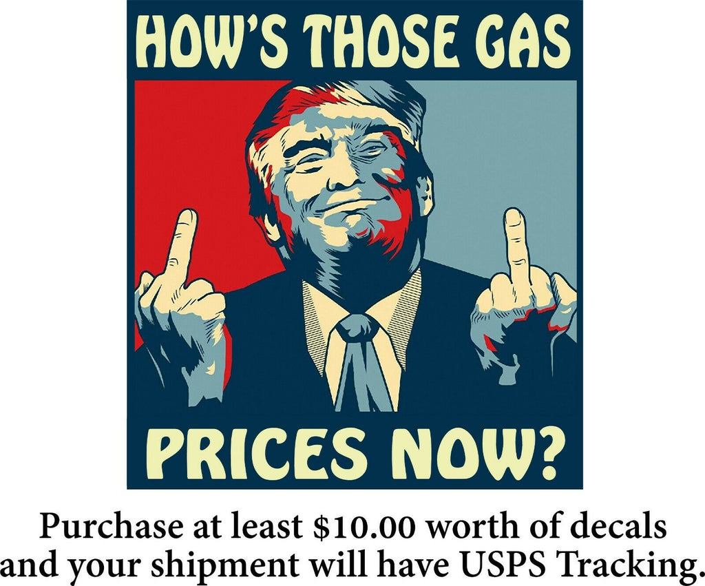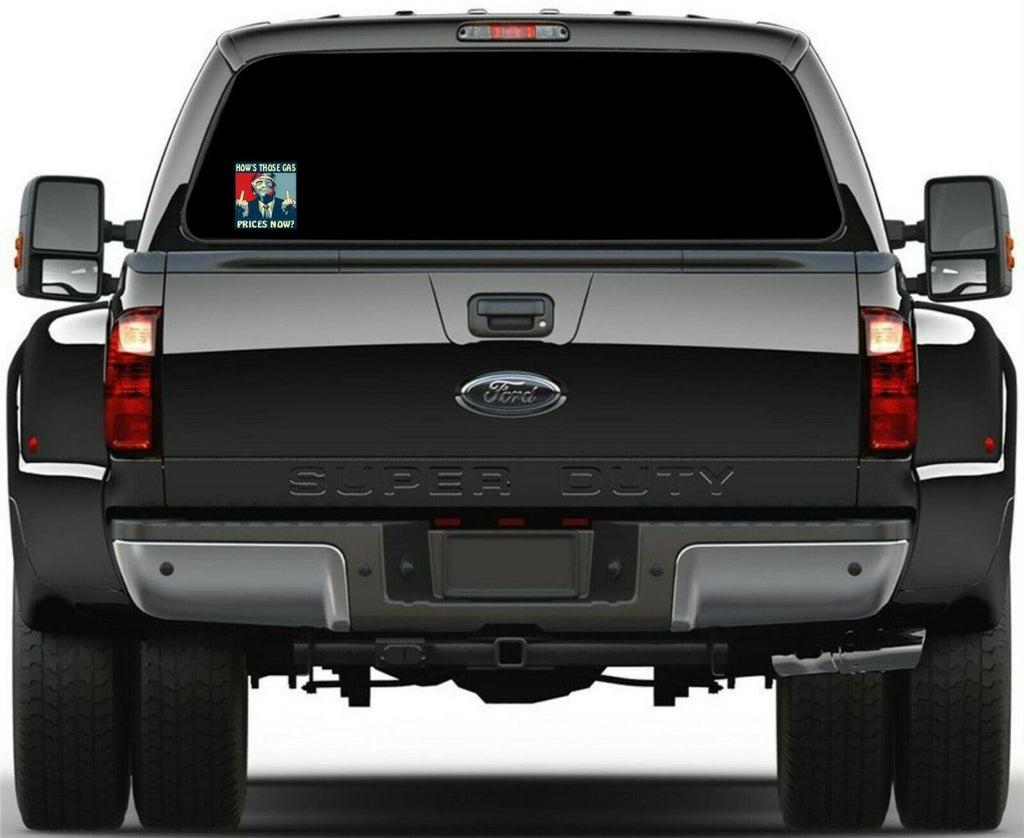Trump How those Gas Prices now 6" x 5.5" Vinyl Decal Sticker Funny Socialist