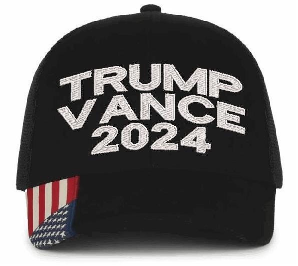 Trump Vance 2024 Embroidered Adjustable BLACK MESH Back Adjustable Hat MAGA