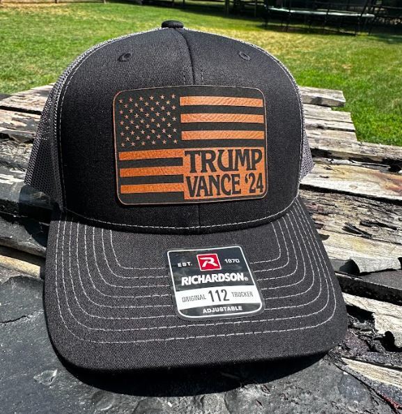 Trump Vance 2024 Leather Badge USAF Flag Style Hat Richardson 112 Charcoal/Black