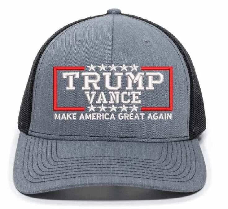 Trump Vance Hat 2024 Embroidered Hat - Outdoor Cap OC771 Heather/Black Mesh Hat