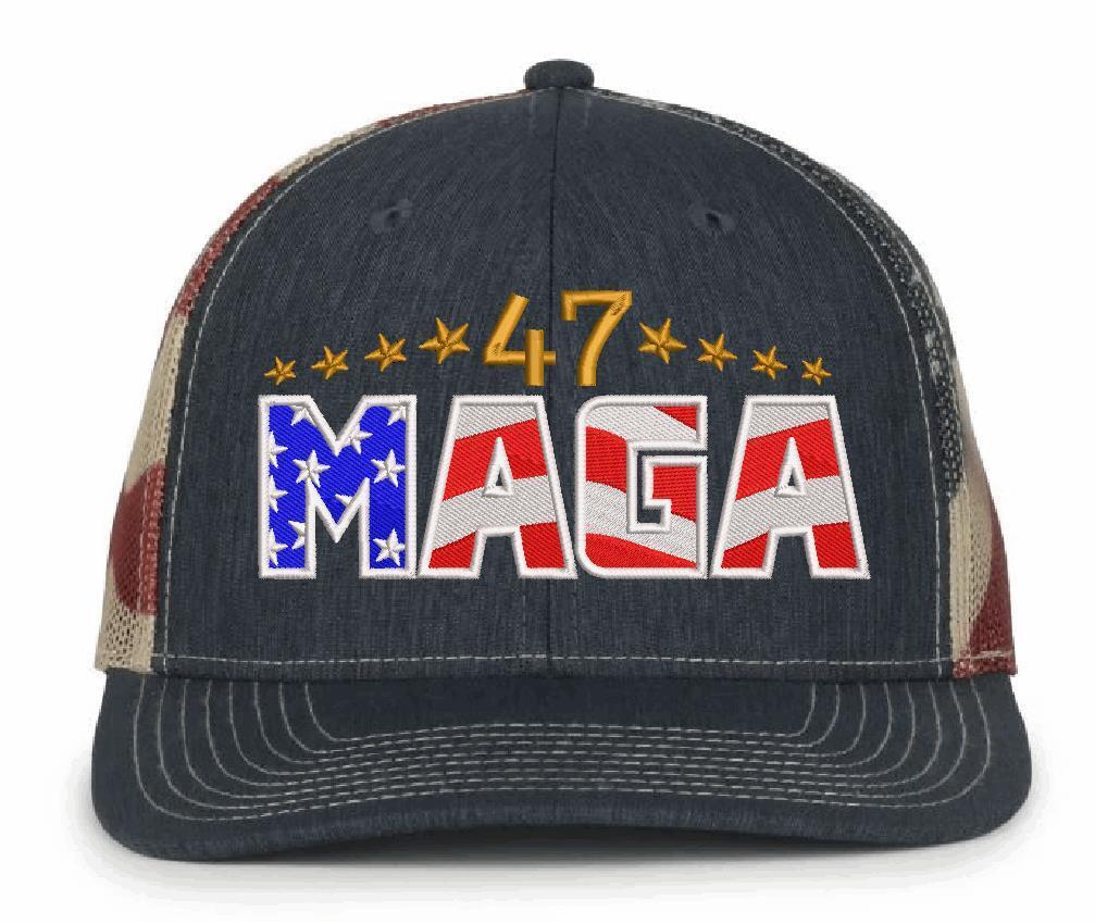 Trump Vance Hat USA MAGA 47 Embroidered Old Glory USA Adjustable Hat MAGA USA