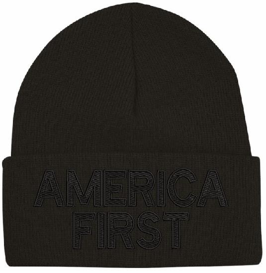 Trump Winter Hat - Embroidered Blackout AMERICA FIRST Winter Cuff or Beanie Hat (Copy)