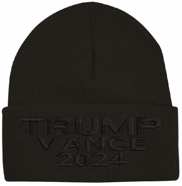 Trump Winter Hat - Embroidered Blackout Trump Vance 2024 Winter Cuff or Beanie Hat