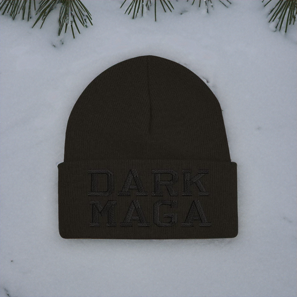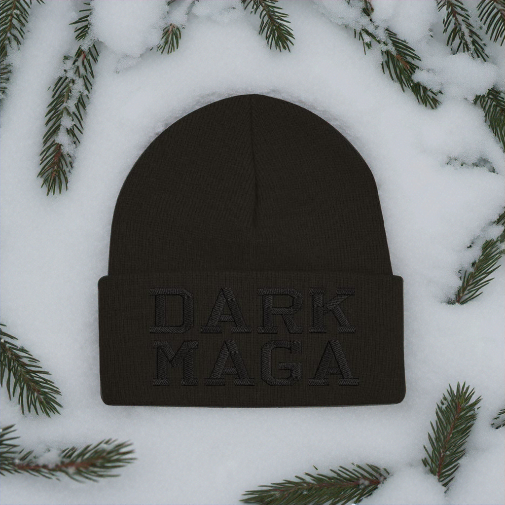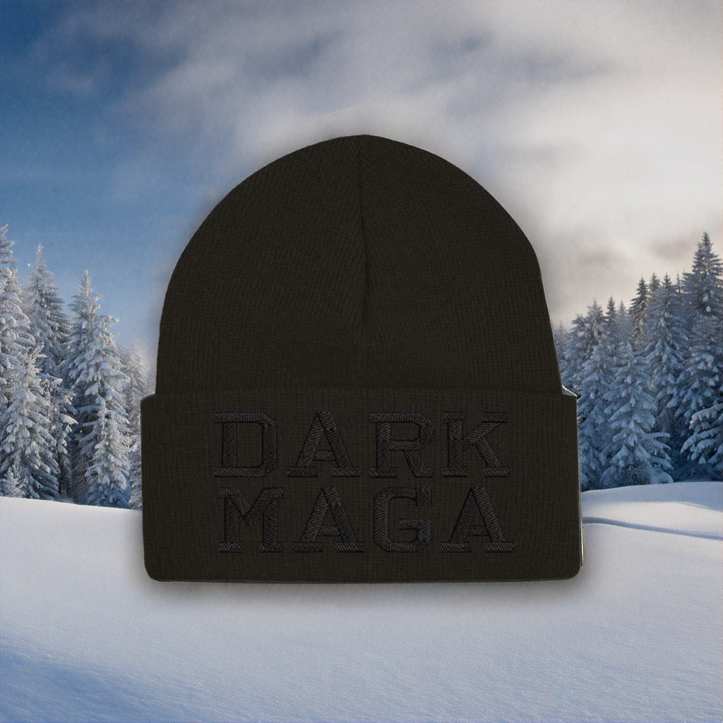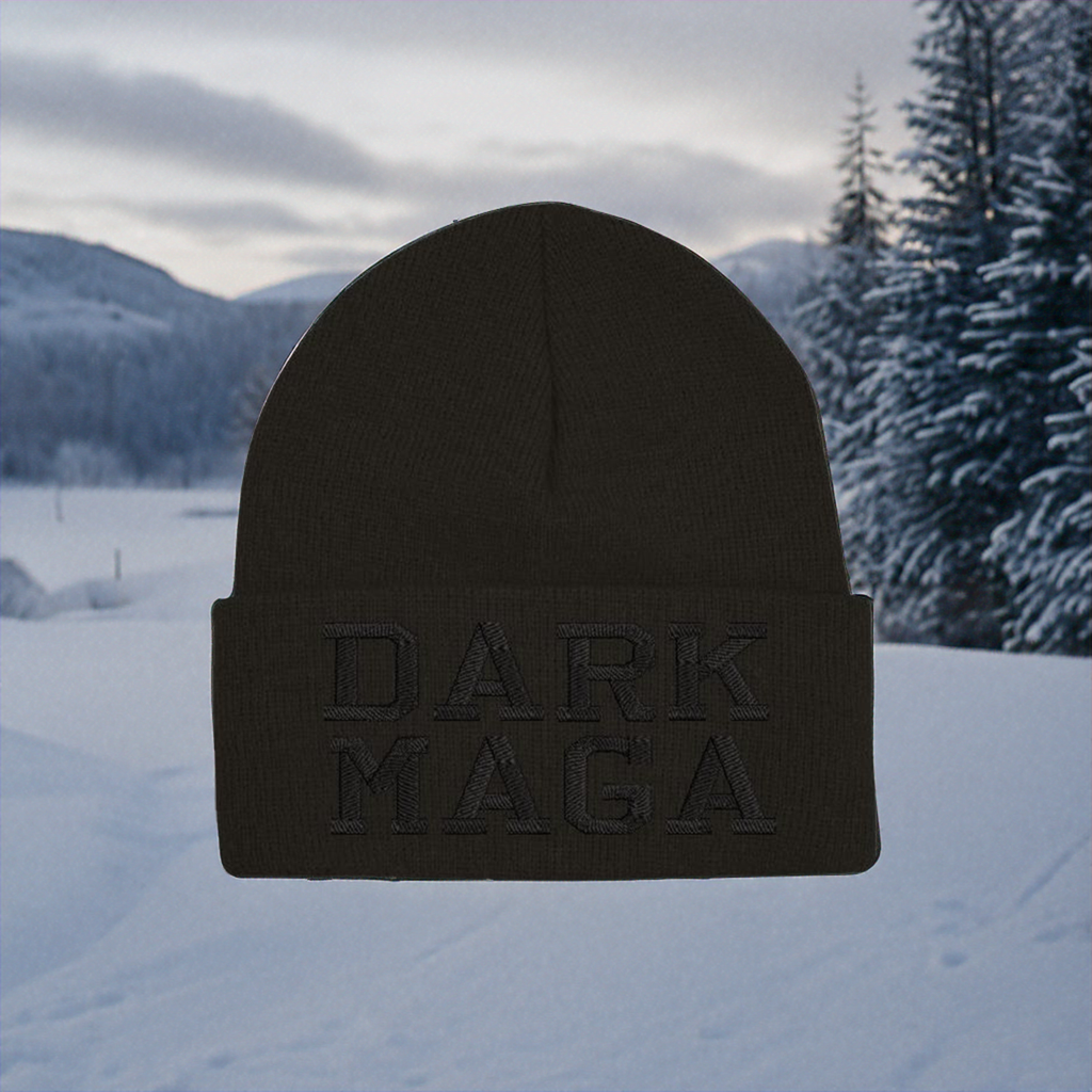 Trump Winter Hat - Embroidered Blackout DARK MAGA Winter Cuff or Beanie Hat