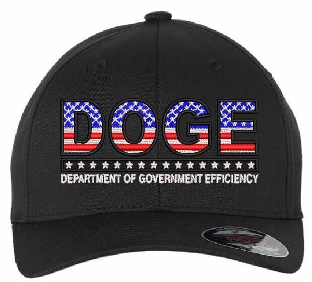 USA DOGE Hat Trump 2024 Elon Musk Efficiency Embroidered Flex Fit BLACK